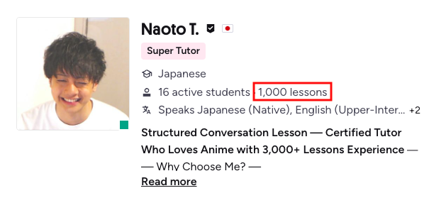 Reaching a four-digit lesson count on one platform feels like a big milestone and gives a sense of credibility as a tutor. I am truly grateful to the students who found me and chose to learn with me when my lesson count was still small.