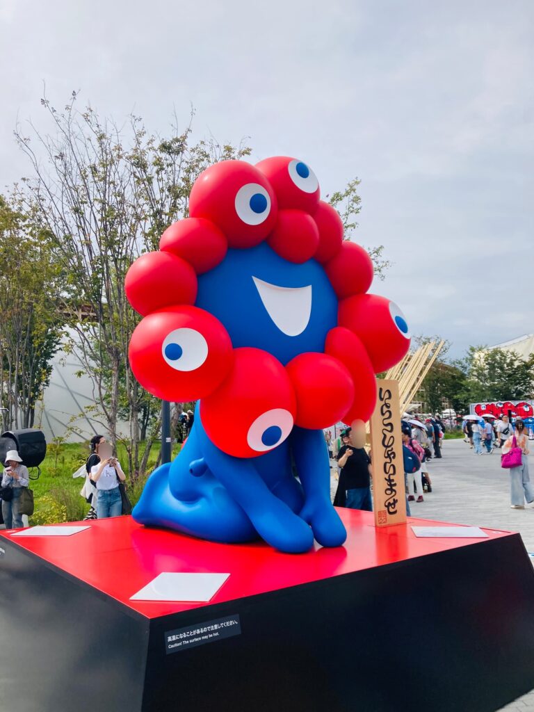 This is Myaku-Myaku, the official mascot of the Osaka Expo. At first, many people found its appearance creepy, so it wasn’t very popular. But over time, everyone got used to it, and it eventually became a fan favorite.