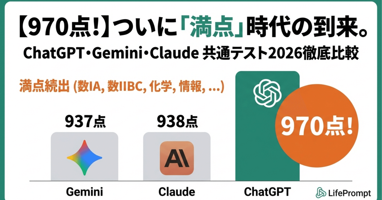 【満点9科目!】共通テスト2026を最新版AIに解かせてみた(Chatgpt、Gemini、Claude)|株式会社LifePrompt